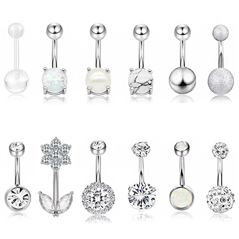 14G 10MM 3/8 Inch 316L Surgical Steel Belly Button Rings Belly Earring CZ Opal Navel Rings Barbell Body Piercings Jewelry Oreja