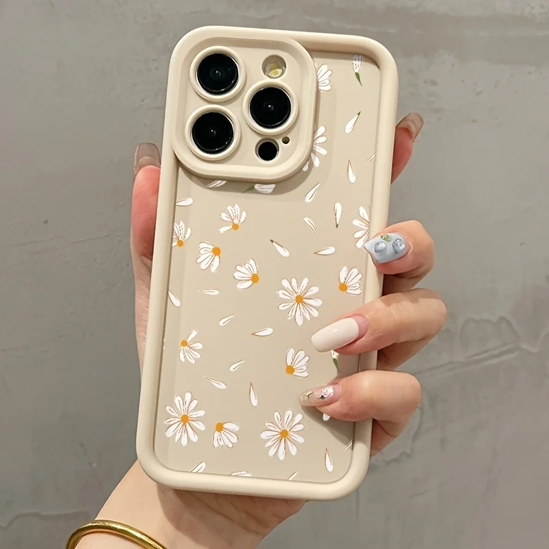 White Small Flower Pattern High-Edge Tpu Anti-Drop Phone Case, Suitable for iPhone 17 Air Pro Max, iPhone 16, 15, 14, 13, 12, 11 Pro Max, Xs, Xr, X, 7, 8 Plus, Se Series Phone Cases, Suitable for Birthday Gifts for Girlfriends, Boyfriends, Friends/Various Holiday Gifts