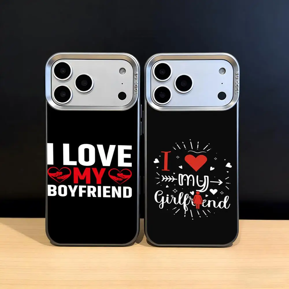I Love My Girlfriend Boyfriend Phone Case for iPhone 11-17 Air ProMax Plated Protector - Anti-Slip, No Fingerprints