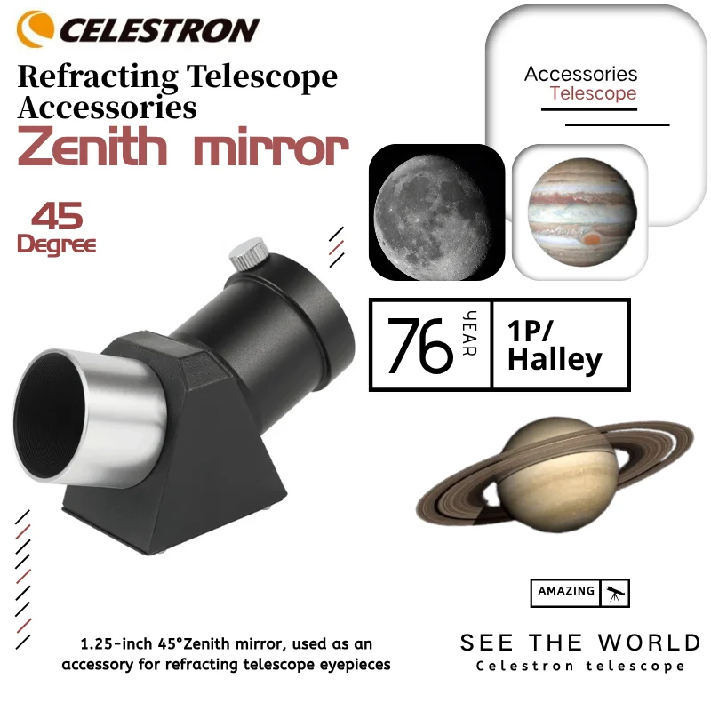 Celestron 1.25 Inch 45° Erect Image Zenith Mirror Diagonal Prism for Astronomical Telescopes,HD For Terrestrial Viewing