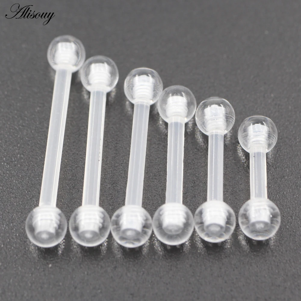12PCS/24PCS 14G 16mm Glow in Dark Flexible Acrylic Straight Tongue Rings Plastic Nipple Ring Retainer Body Piercing Jewelry
