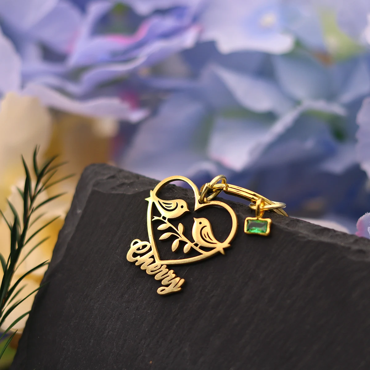 Todorova Custom Heart & Two Birds Keychain, Personalized Name Engraved Stainless Steel Keyring , Unisex ID Tag Jewelry Gift