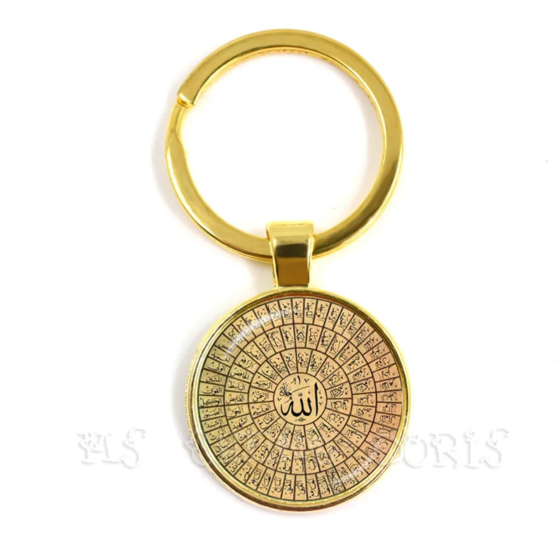 Gold-color 25mm Glass Muslim Islamic Allah Arab Muslim Key Chain For Muhammad Religious Middle Jewelry Ramadan Gift For Friends