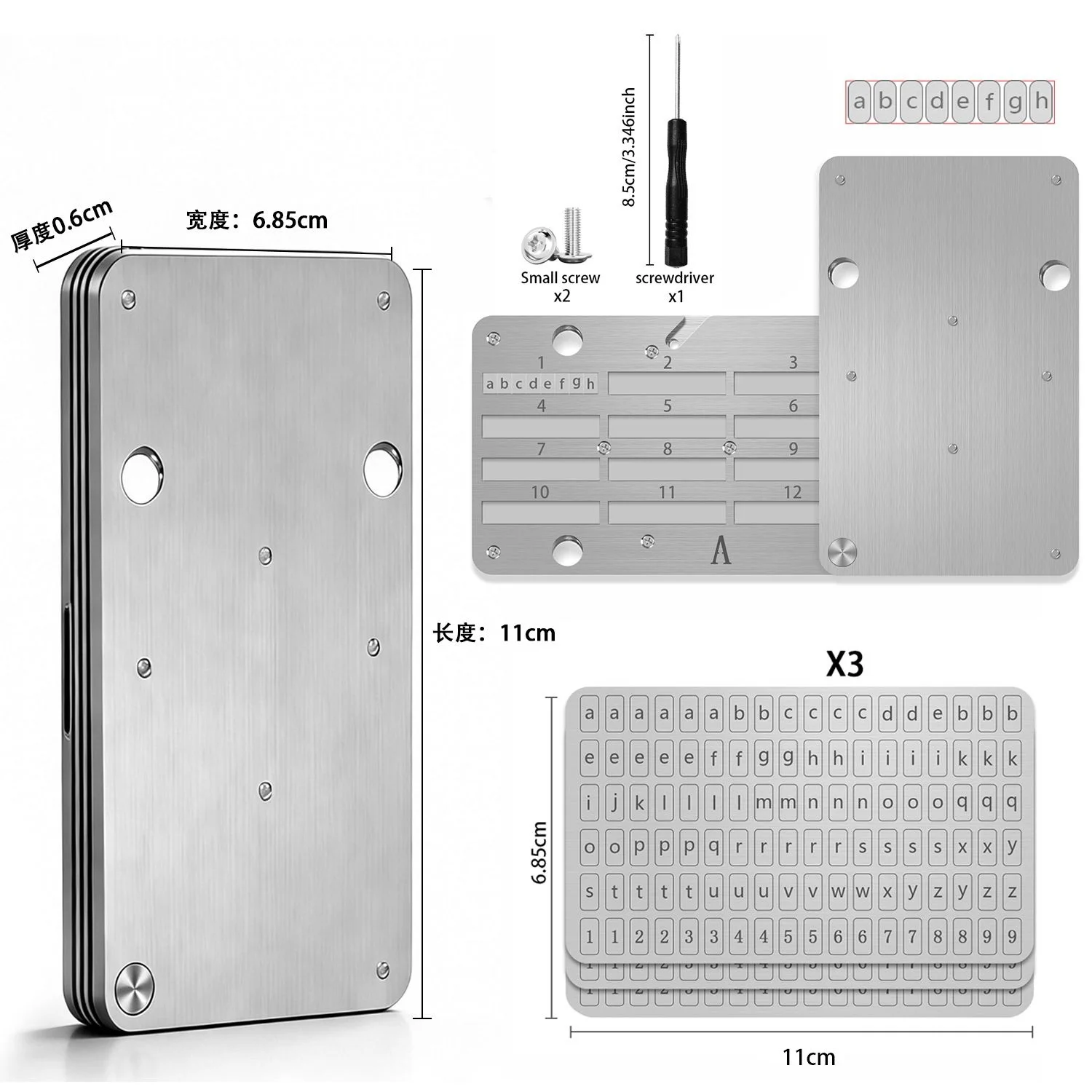 Upgrade Steel 8-Letter 24-Grid Plate Password Storage Plate Wallet Bitcoin Cold Backup Recorder