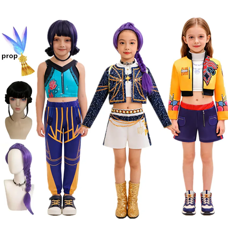 Kids Halloween RRumi Cosplay Costume Black Gold Stage Costume 3DPrint Kpop Devil Hunters Uniform Performance Party ZoeyMira Sets