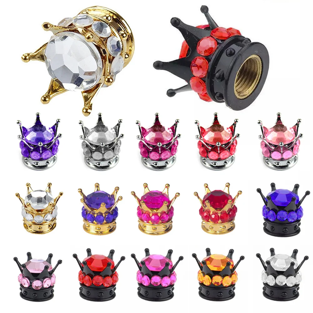 4PCS Car Motorcycle Bicycle Air Cover Car Wheel Tire Valve Caps Cover Crown Shape Bling Diamond Tyre Stem Dust Valve Caps Truck