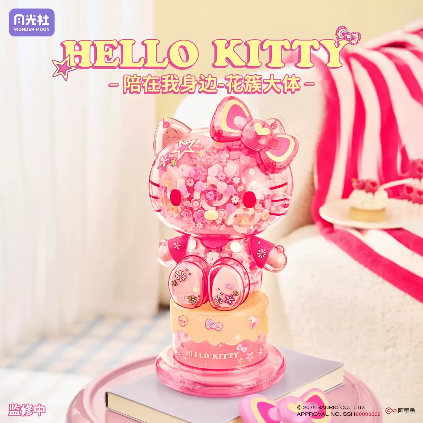 Wonder Moon Sanrio Hello Kitty Building Blocks Flower Cluster Ornament Breathing Light Desktop Decoration Girl'S Birthday Gift