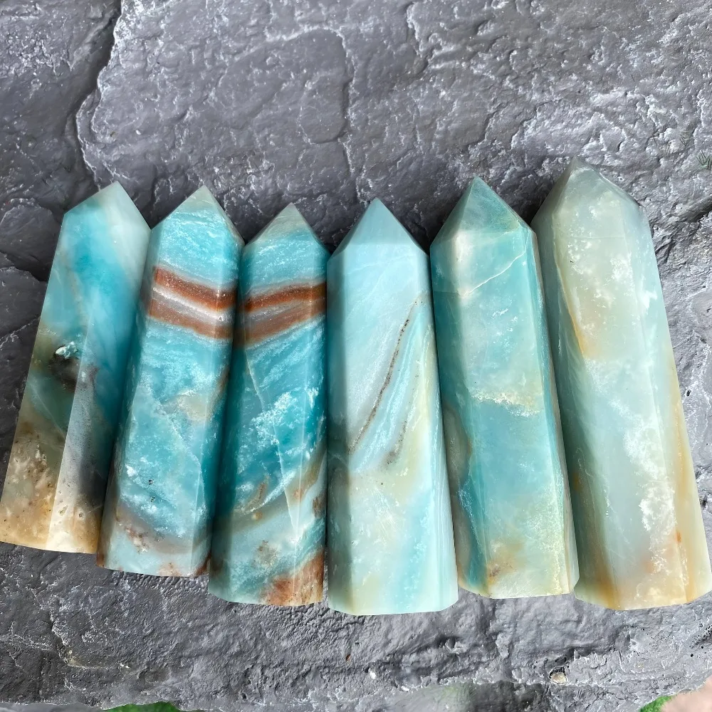 1pc Blue Onyx Lemurian Calcite Obelisk Crystal Tower Large Polished Natural Stone for Home Decor Wedding Decoration Stone
