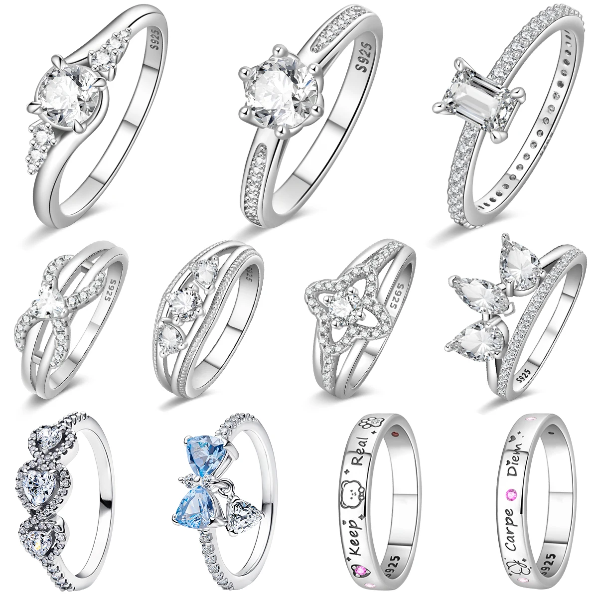 925 Sterling Silver Simple Rings Shiny Diamond Star Heart Blue Stone Gem Couple Plain Band Jewelry Gift for Wedding Engagement