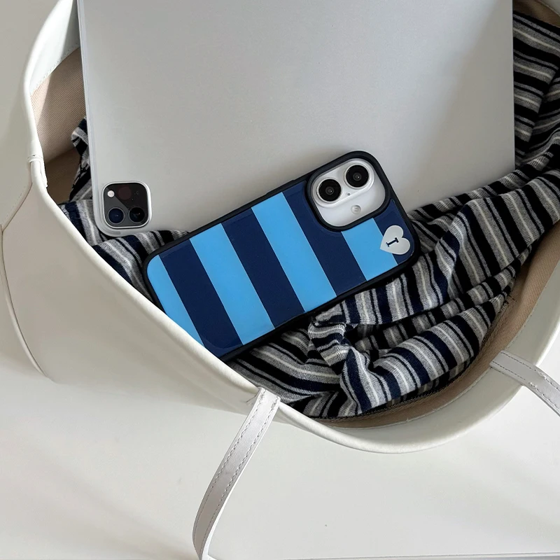 Retro Light Blue Stripe Pattern Black Border Drip Glue Phone Case For iPhone 17 Air 16 Pro Max 15 14 Plus 13 12 11 Back Cover