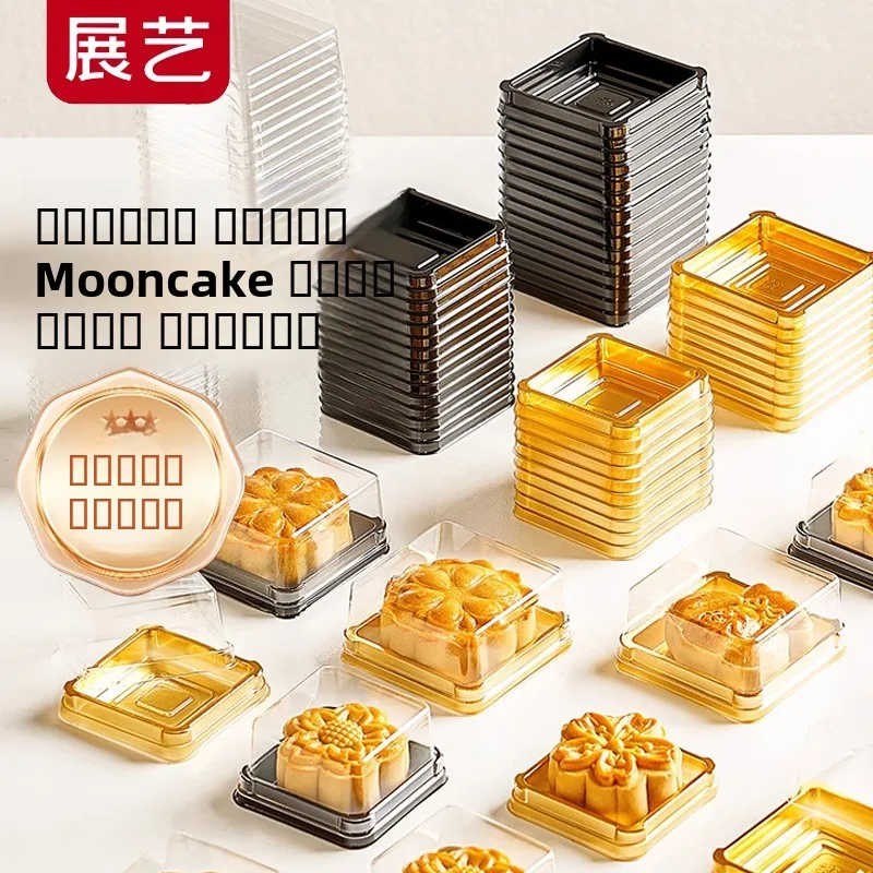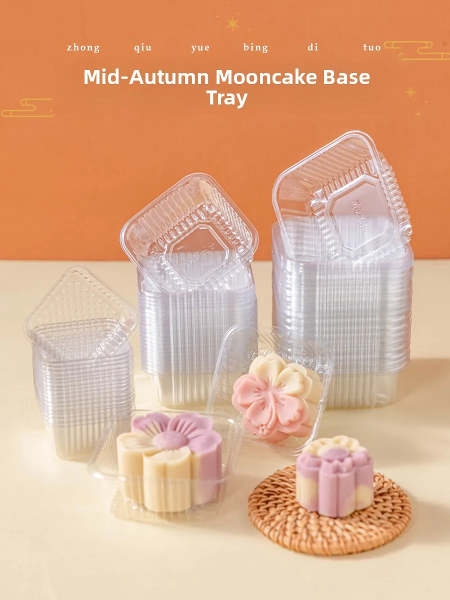 Thiened Plastic Mooncake Paaging Box with Transparent Base Tray een Bean Cake Ice Skin 50g Inner round Square for Baking