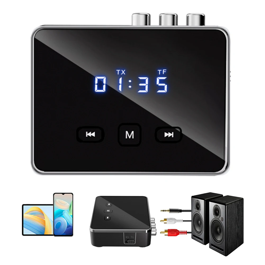 BT 5.4 Receiver Transmitter with RCA 3.5mm AUX & Display Wireless Audio Adapter BT Adapter for TV/Car/PC/Home Stereo/Speakers