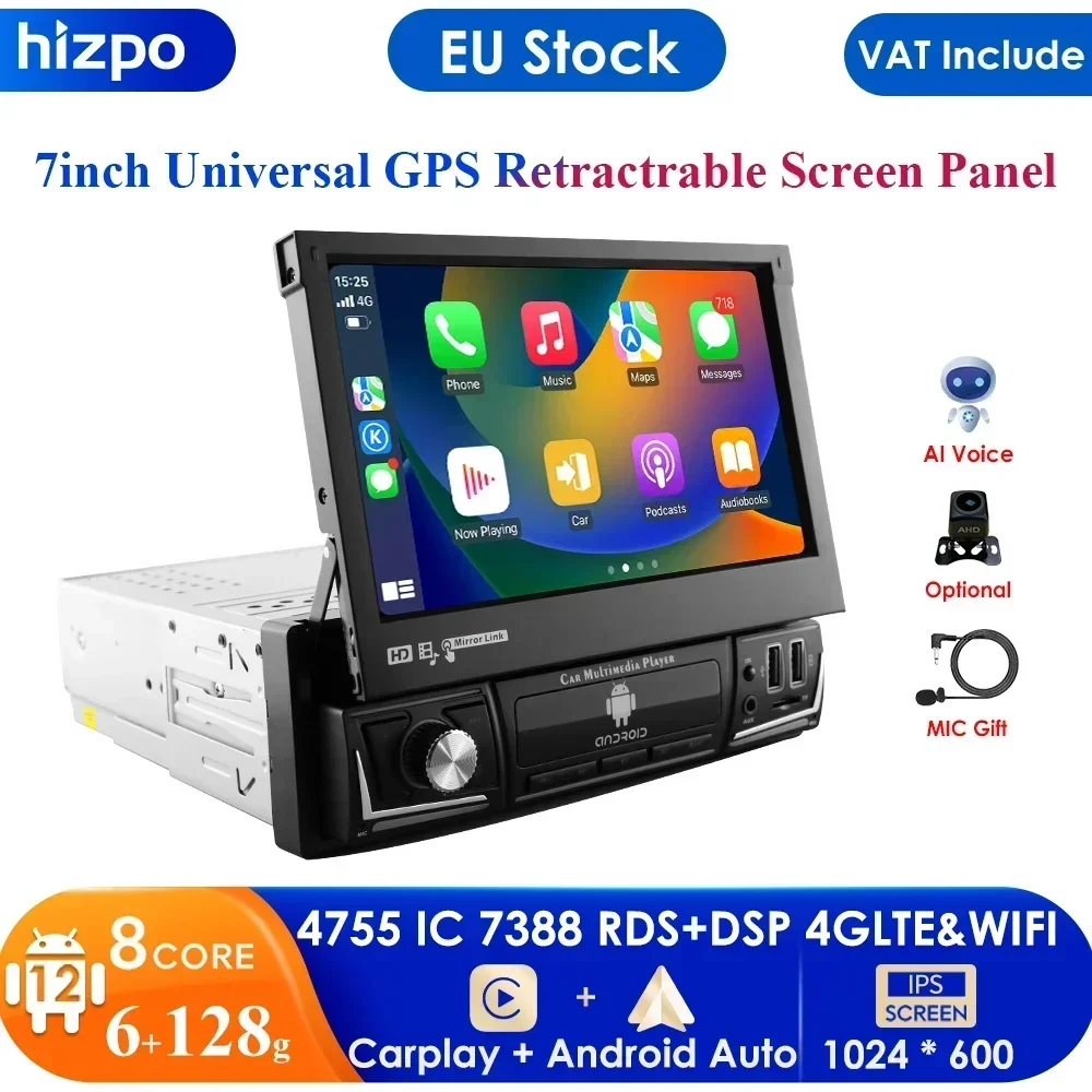 Universal 7inch 1Din Car Multimedia Player Ajustable Touch Screen Autoradio Stereo Video GPS WiFi Auto Radio Android Carplay RDS