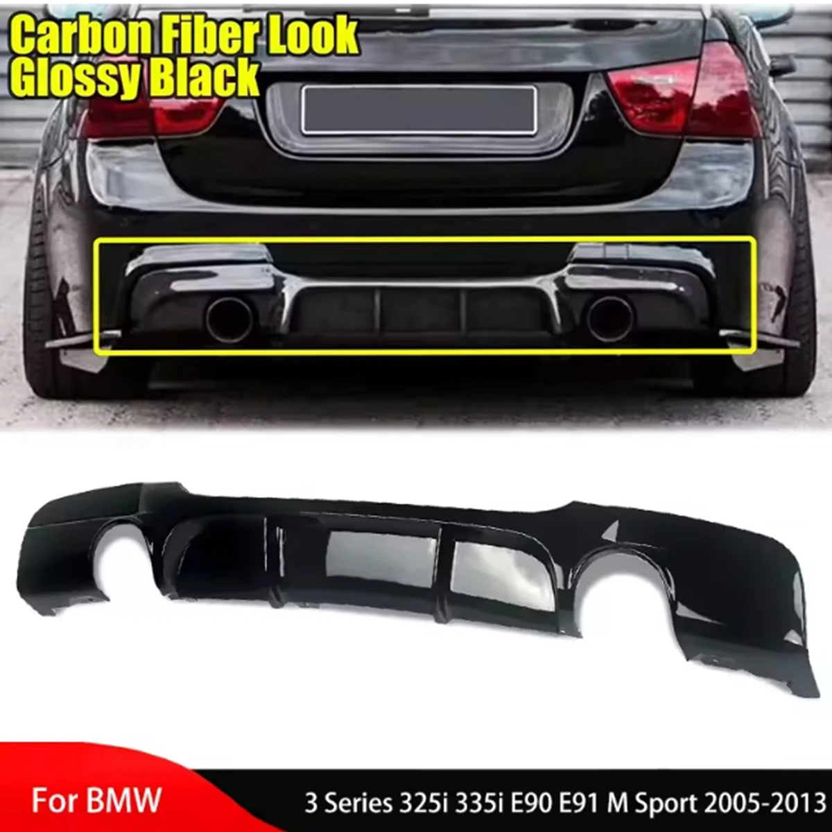MP Style Rear Bumper Diffuser Body Kits For BMW 3 Series E90 E91 320i 320d 325d 330d 335i 2005-2012 4-Door M-Sport Black Tuning