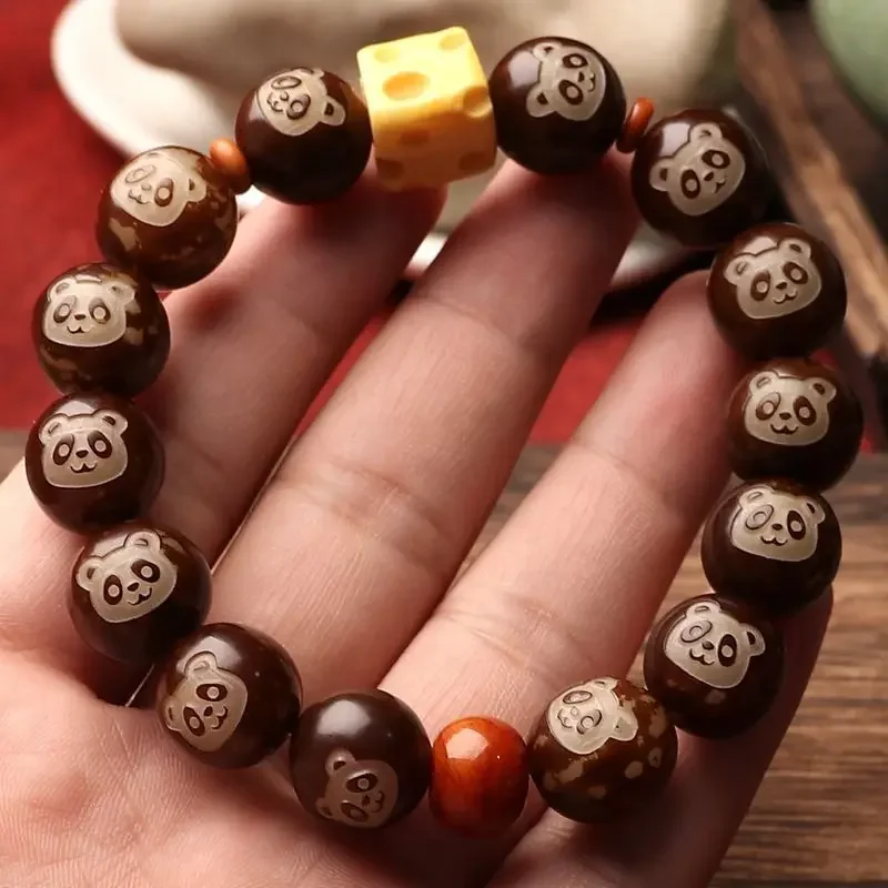 Natural Raw Skin Bodhi Carved Red Panda Bracelet Men's and Women's Fingers Rub Original Seeds To Make Money Hand String Handheld