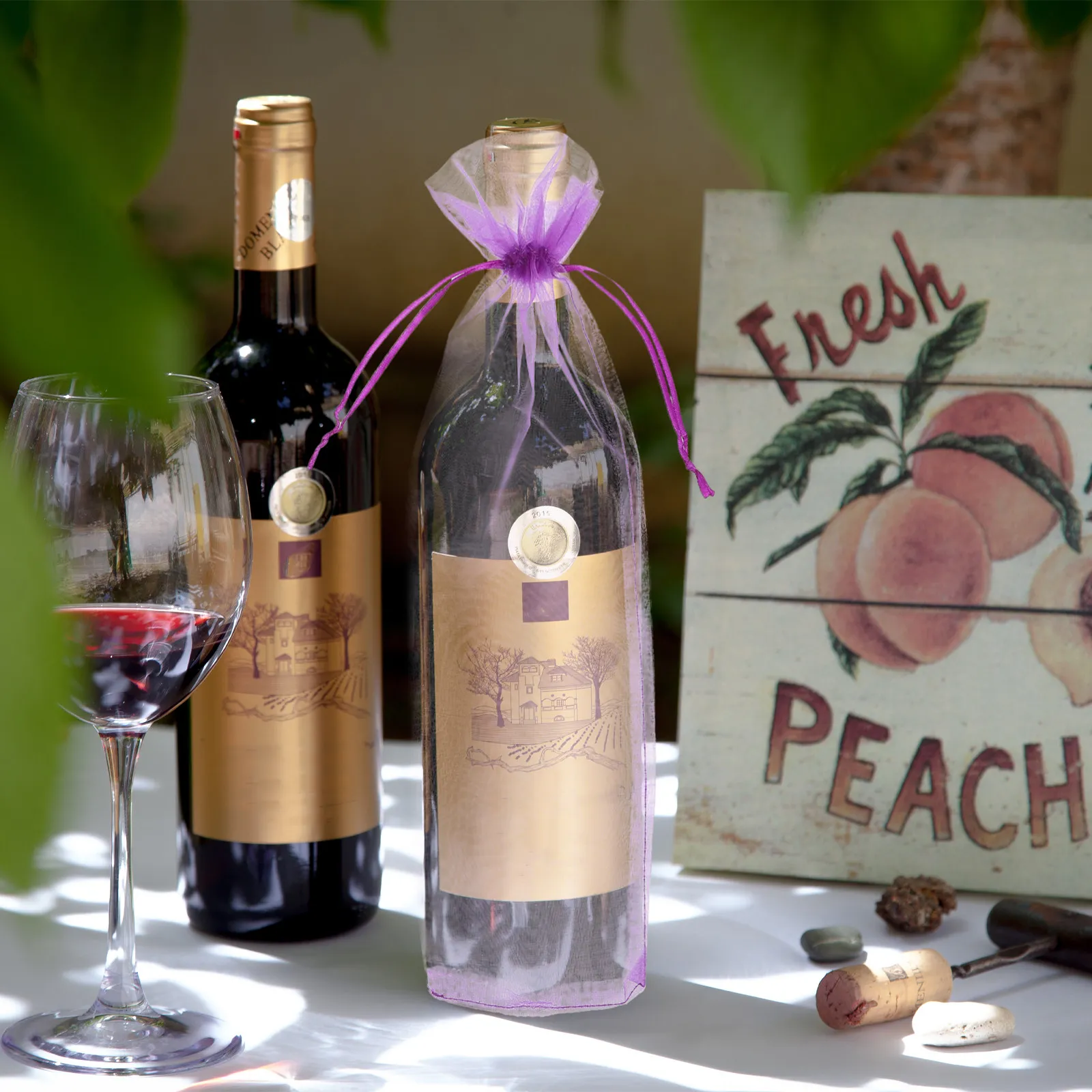 10pcs Wine Packaging Bags Purple 37*15Cm Sheer Organza Bottle Wrap For Gift Condiments Candles Shampoo Lotion Bath Body Organza