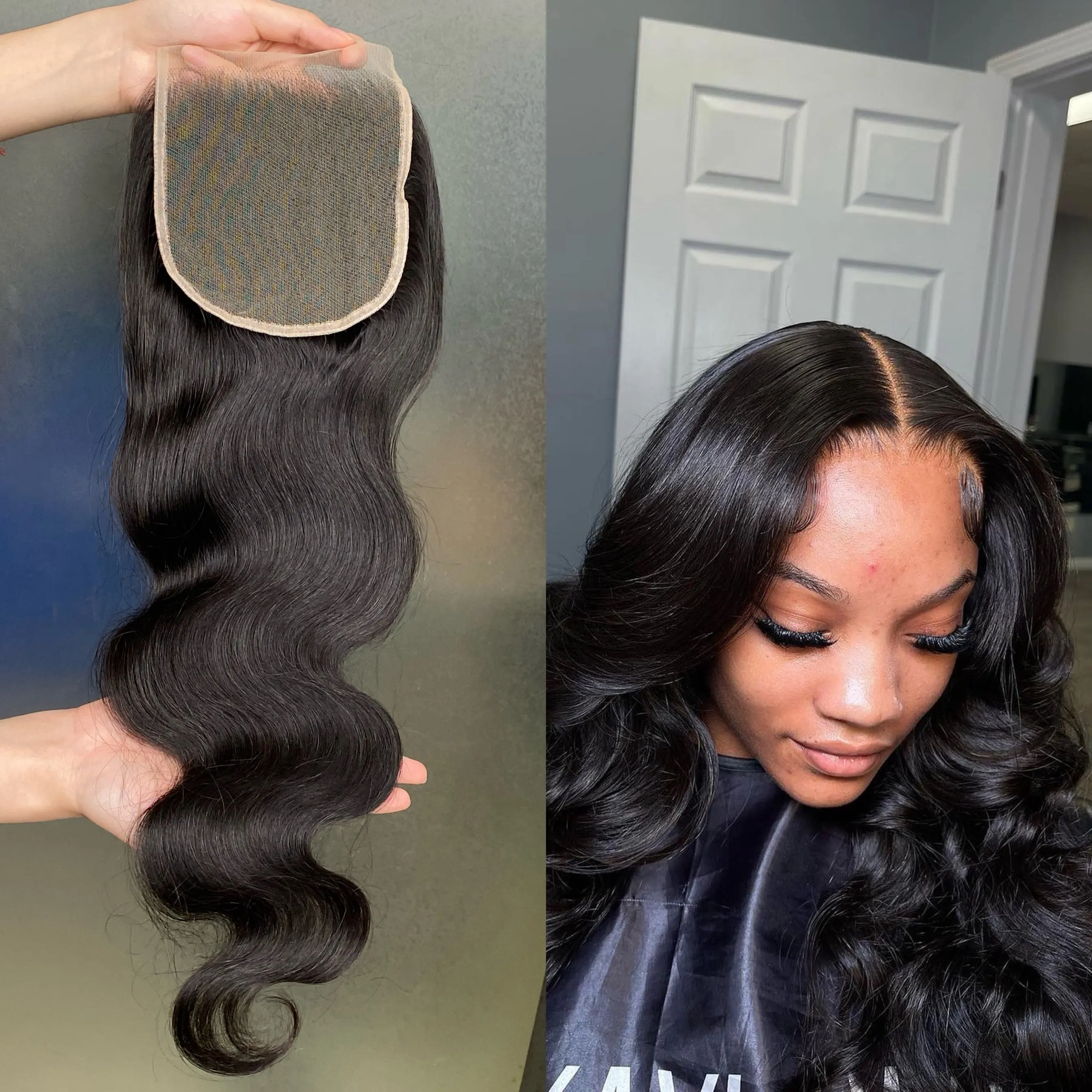 100% Human Hair Body Wave 5x5 Transparent Lace Closure Top Quality Virgin Hair with Natural Looking Lace