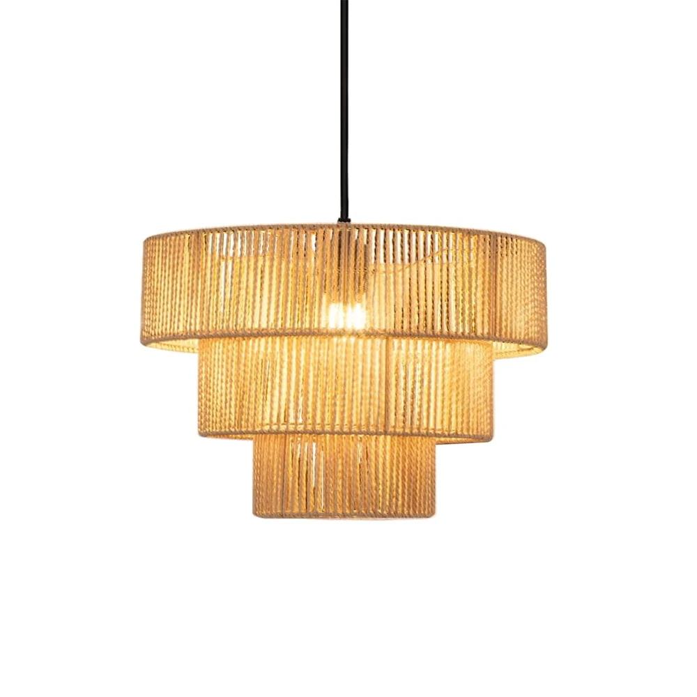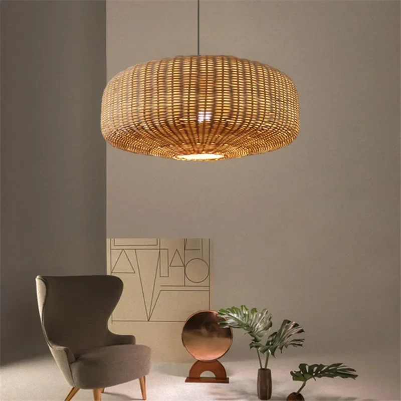 Natural Rattan Woven Pendant Lamp with Hemp Rope Handmade Retro Ceiling Light for Kitchen Bedroom Restaurant Cafe Boho Decor