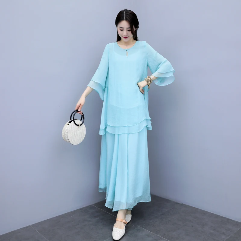Boho Chic Women's Tea Clothing Yoga Wear Loose Fit Zen Dance Tee-Piece Set Artistic Casual Summer Faion plus Size