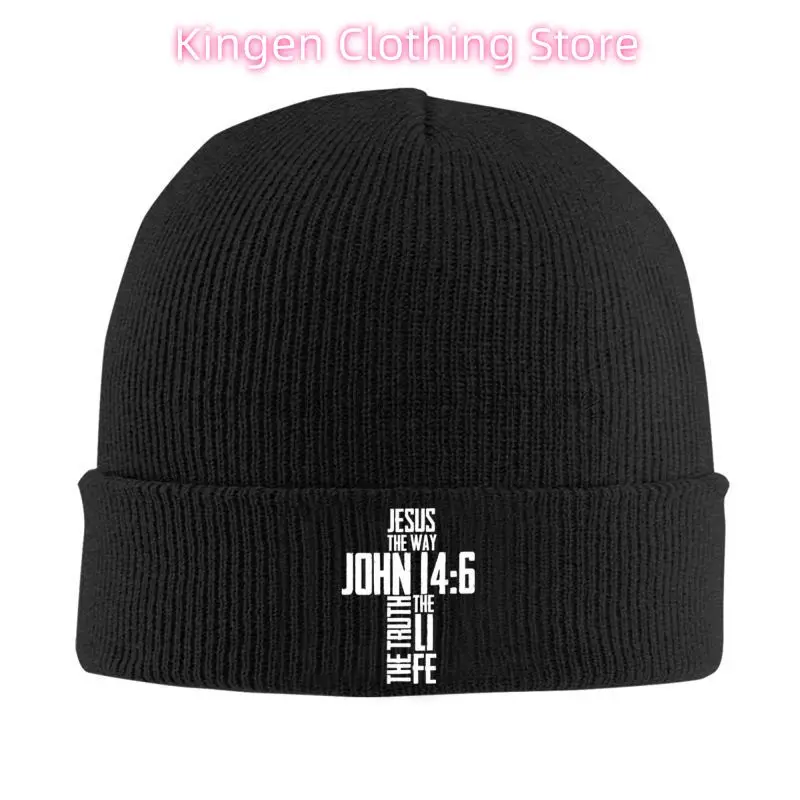 Christian Bible Verse Jesus The Way John 14:6 Beanie Hat Skullies Beanies Unisex Head Wrap Bonnet Hats Winter Warm Knit Caps