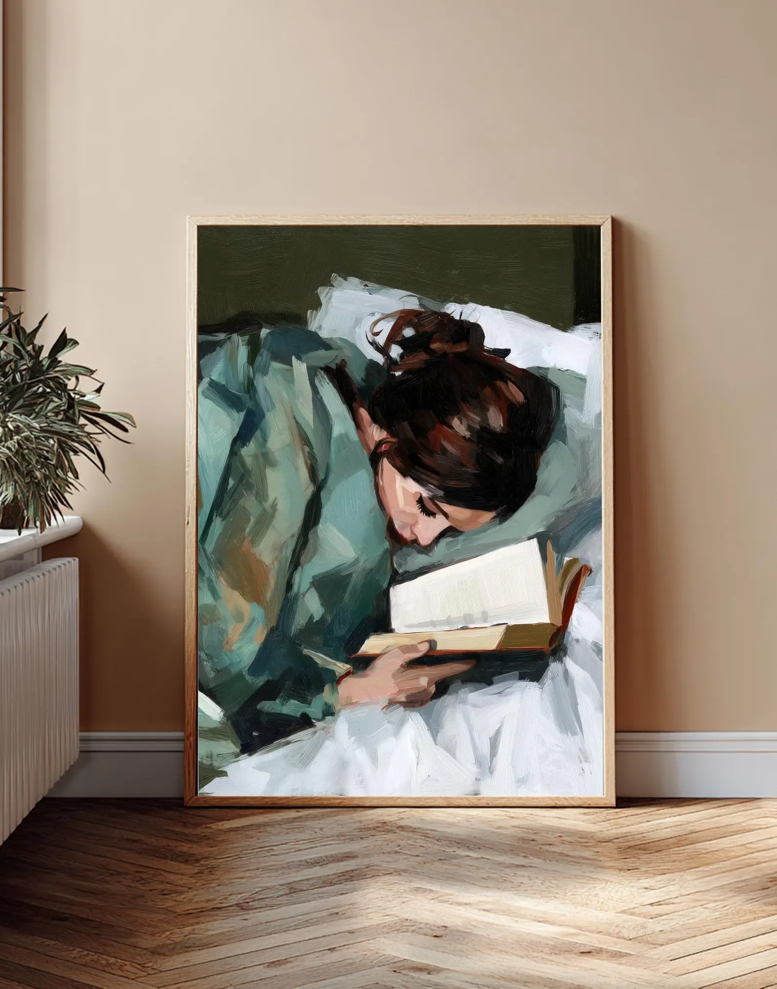 Girl Reading Wall Art, Abstract Girl with Book Print, Women Sleeping Art, Modern Bedroom Decor, Book Lovers Gift, Bedroom Wall A
