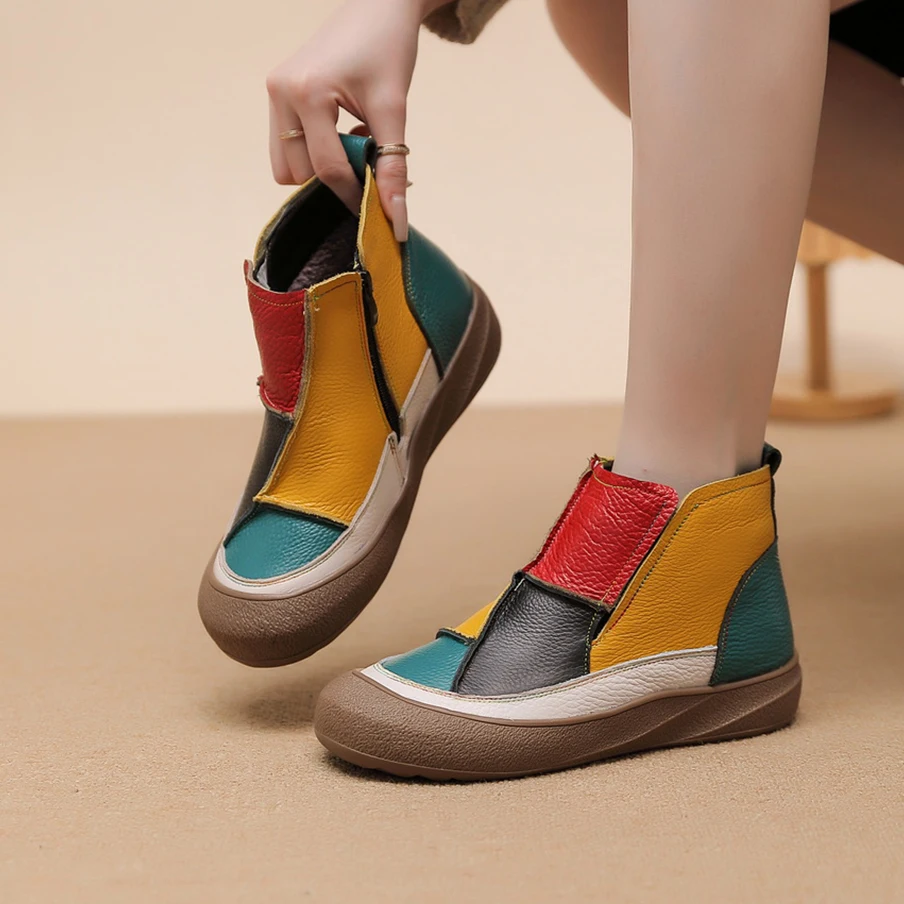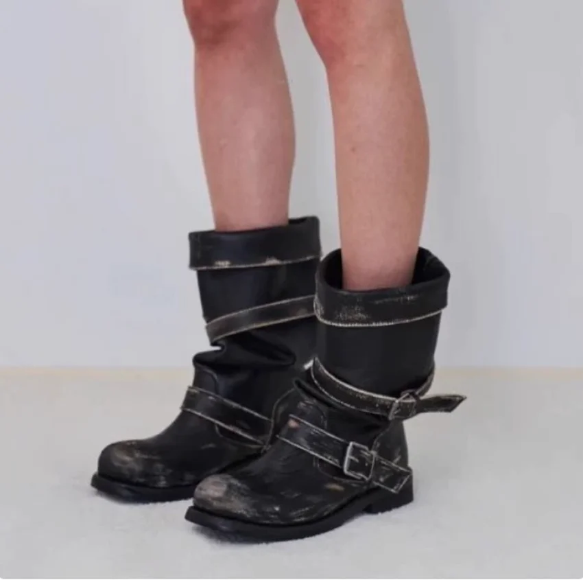 AIYKAZYSDL 2026 Vintage Retro Mid-calf Boots Flat Heel Bohemia Boho Shoes Modern Western Ethnic Bootie Slouchy Shoes For Women