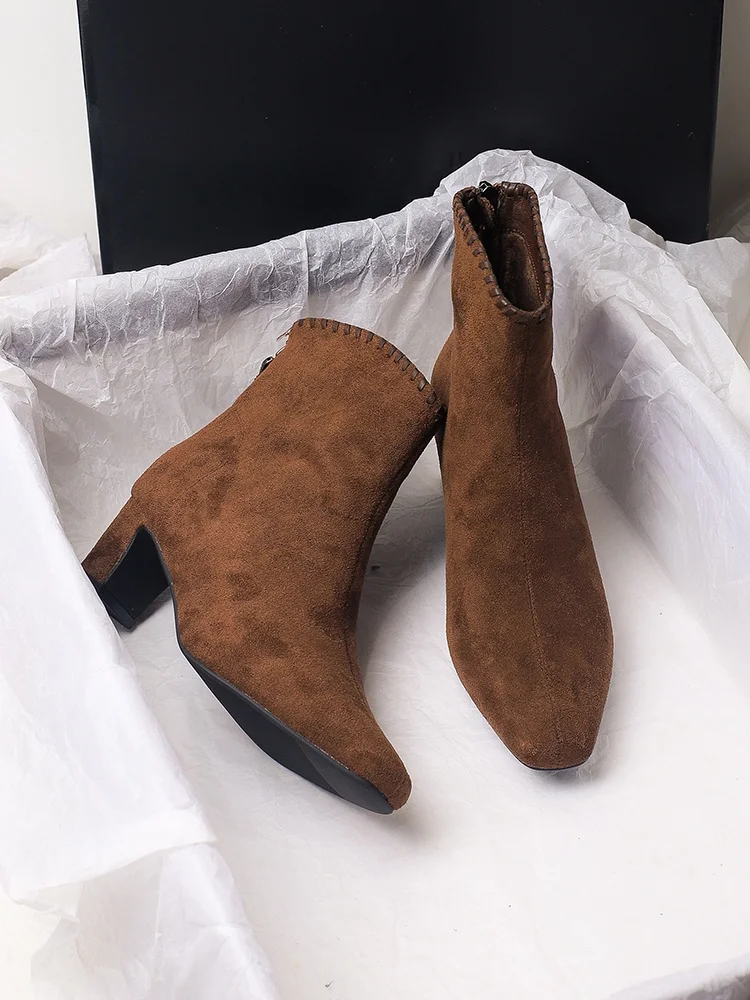 Charming Square Head High Heel ort Boots Women's Autumn Winter New Elastic Slim Boot Versatile Thi Heel Boots PU Material