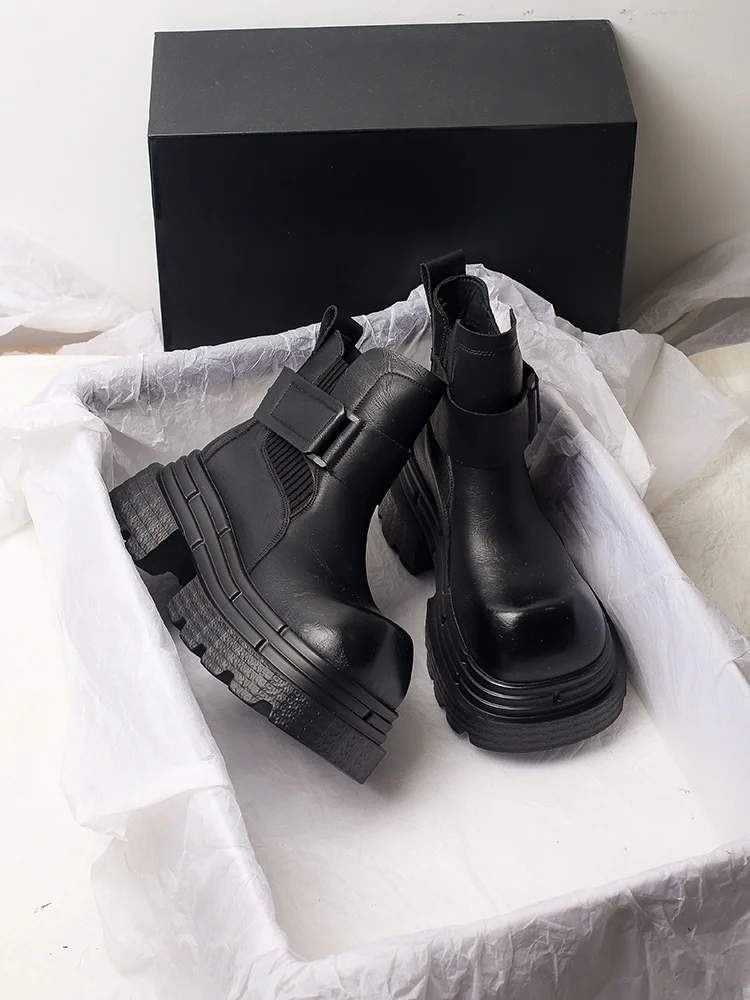 Charming Thi Bot Boots Women's Autumn Winter Belt Bule Heightening Slimming Cool ort Boots Bla Fem