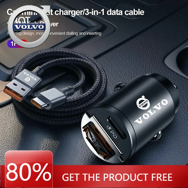Cup Holders Mini USB Car Quick Charger Data Line/Cigarette Lighter Convert Plug For Volvo EX30 XC60 XC40 V60 V40 XC90 XC70 V50 S