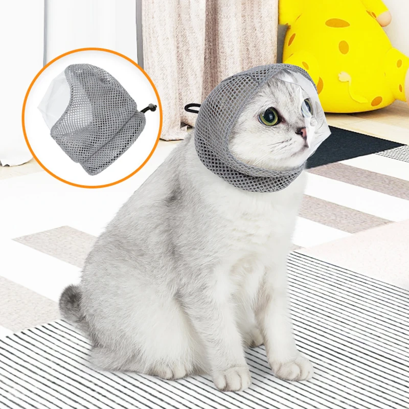Anti Bite Breathable Mesh Cat Hood Comfortable Adjustable Anti Scratch Bathing Nail Clipping Cat Mask Pet Grooming Supplies