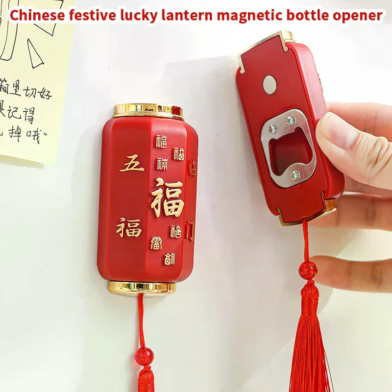 Festive Lantern Refrigerator Magnet Bottle Opener 2-in-1 Multi-purpose Auspicious Magnetic Household Beer Can Opener Kitchenware
