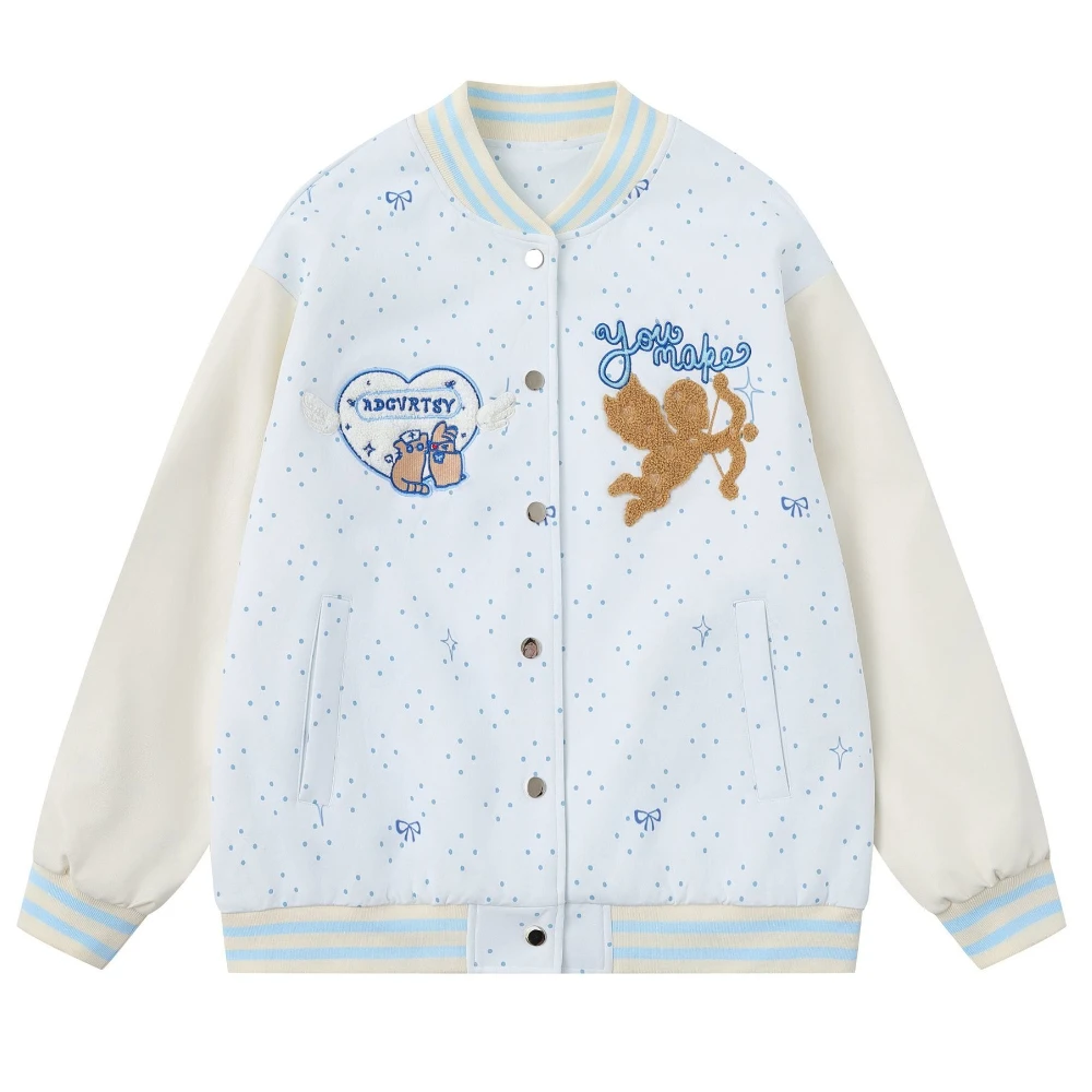 Japan Harajuku Cute Cartoon Embroidery Bomber Jackets Cute Bow Knot Preppy-style Baseball Jacket Loose Oversized Coats Kawaii