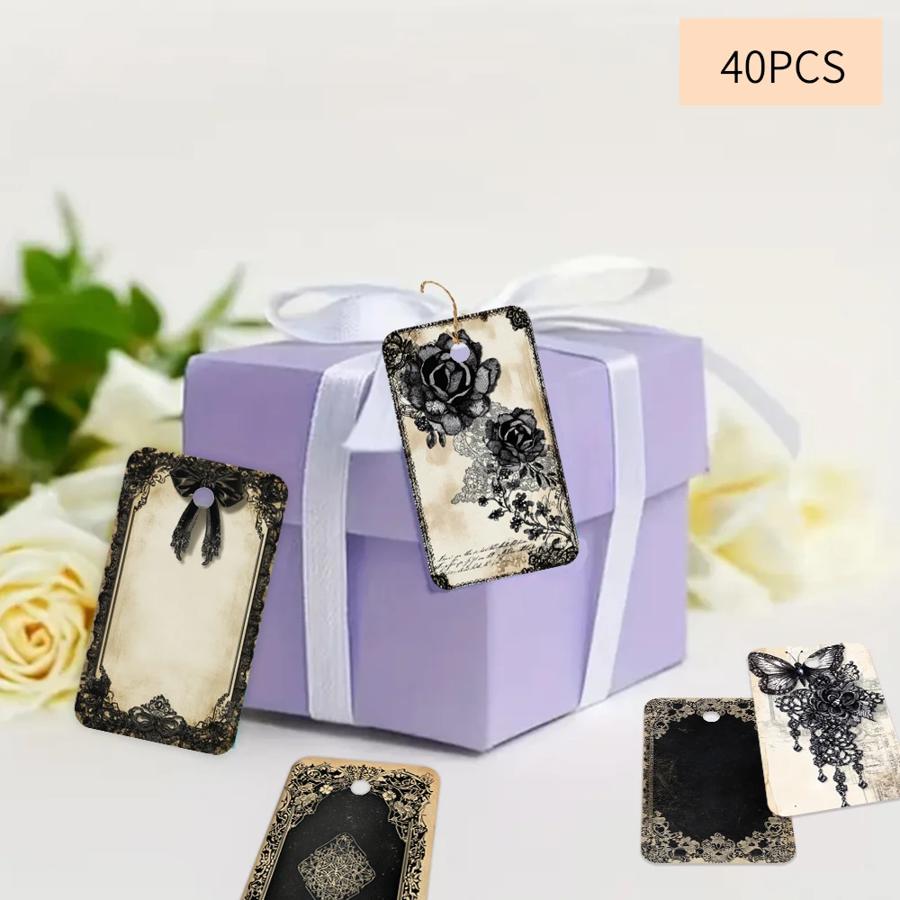 40pcs Gothic Vintage Dark Style Decorative Tags, Aesthetic Gift Labels, Party Decoration, Handmade Packaging Accents, Hemp Rope