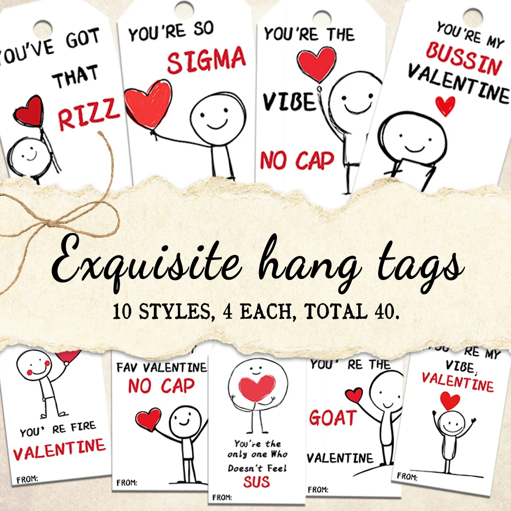 40pcs Valentine's Day Cute Cartoon Character Decorative Tags, Adorable Gift Labels, Party Decoration, Handmade Packaging Accents