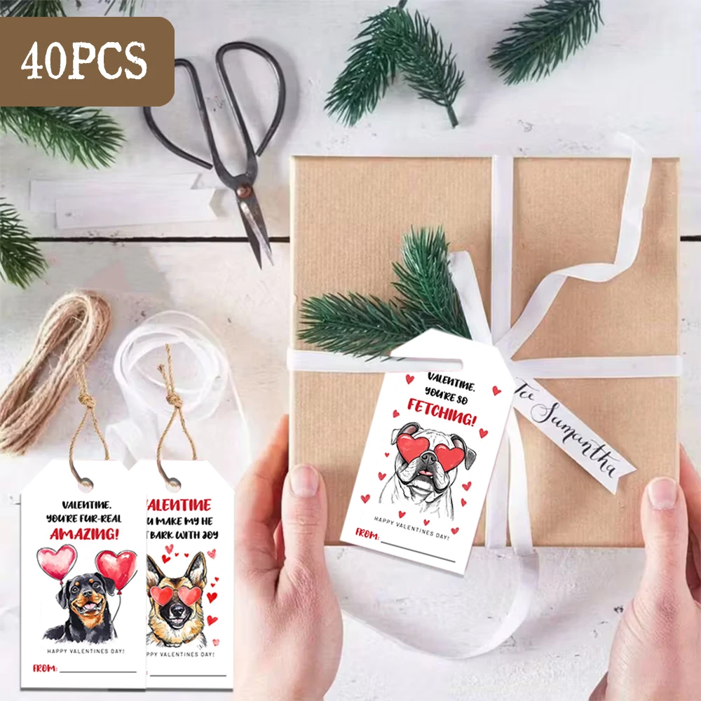 40pcs Valentine's Day Dog Theme Decorative Tags,Cute Aesthetic Gift Labels,Party Decoration,Handmade Packaging Accents,Hemp Rope