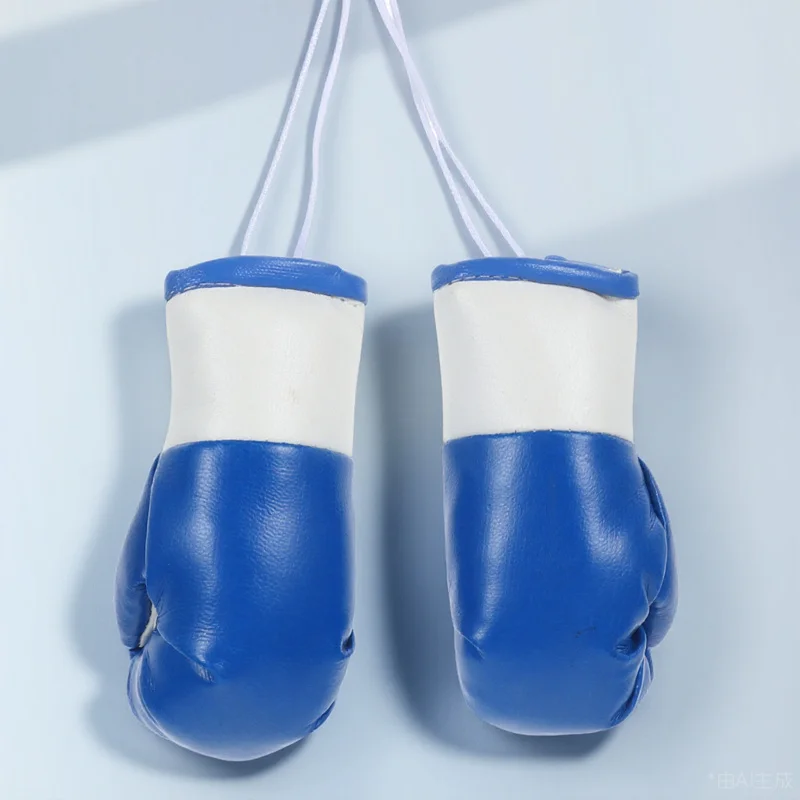 2pcs Mini Boxing Gloves Car Decoration Blue PVC Punching Bag Keychain Tiny Mirror Balls Hanging Ornament Stylish Sports Lover