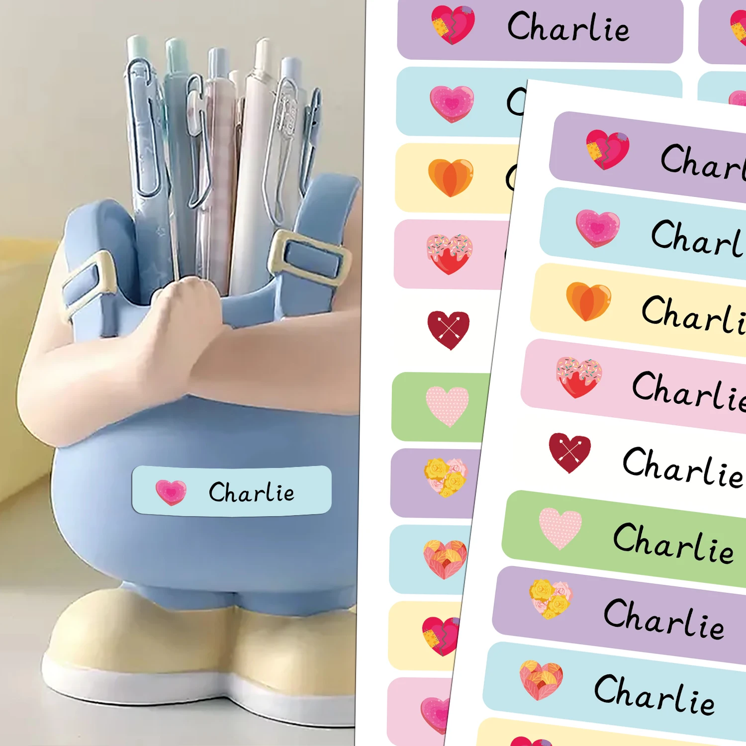 Personalized Heart Shape Name Tags Stickers Waterproof Labels For School Supplies Water Bottles Lunch Boxes Stationery Design