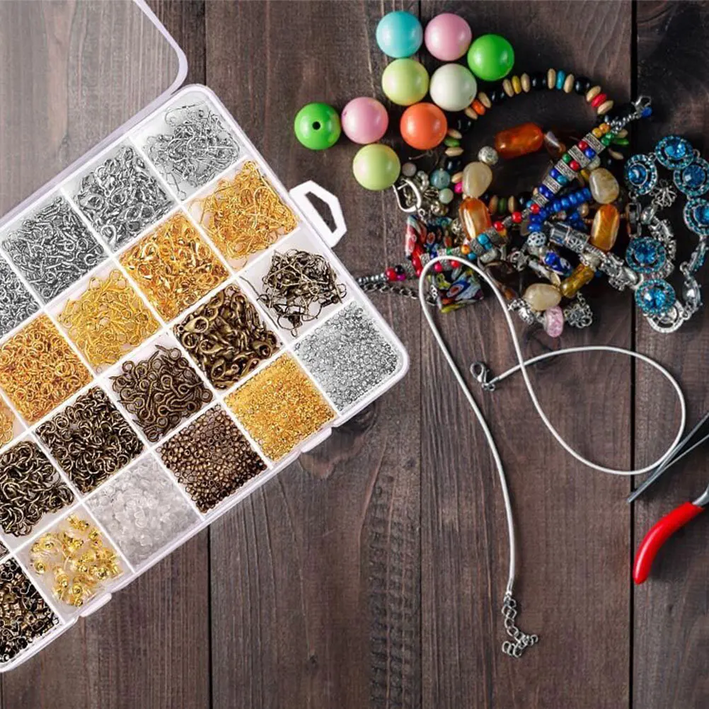 1Set Jewelry Findings Set Versatile DIY Components for Necklace Bracelet Repair Lobster Clasps Jump Rings Assembly Tools