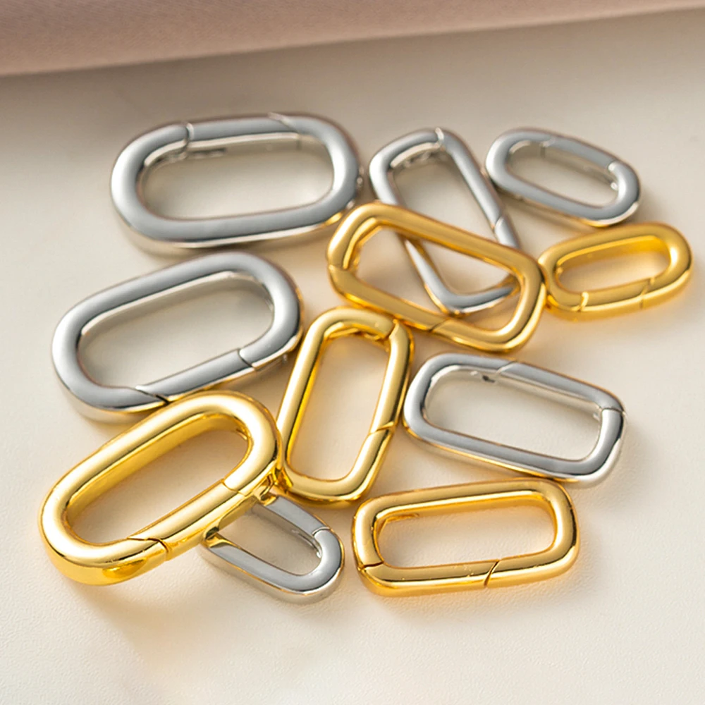 2pcs/Lot 18K Gold Plated Brass Spring Keyring Carabiner Connector For DIY Bracelet Necklaces Jewelry Component Making Supplies