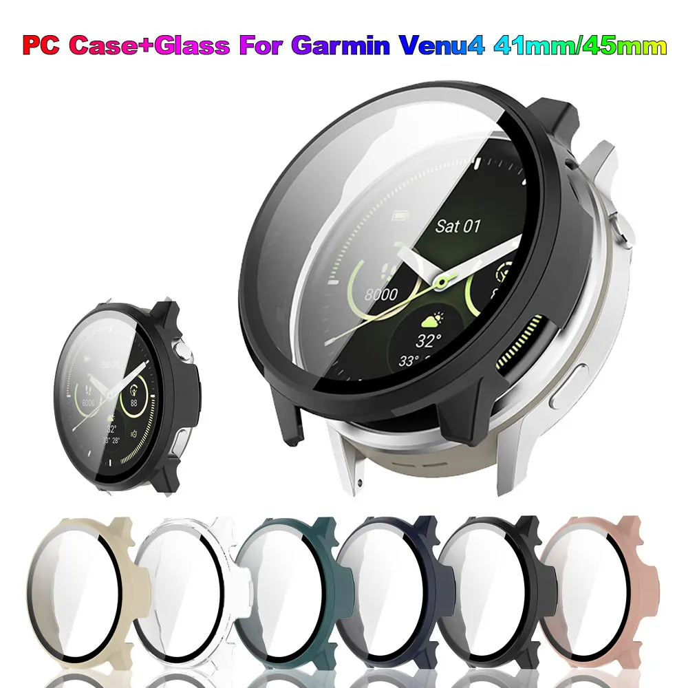 Glass + PC Case For Garmin Venu 4 41mm 45mm Glass Anti-scratch Screen Protector & Hard Protective Bumper Venu4 Smart Accessories