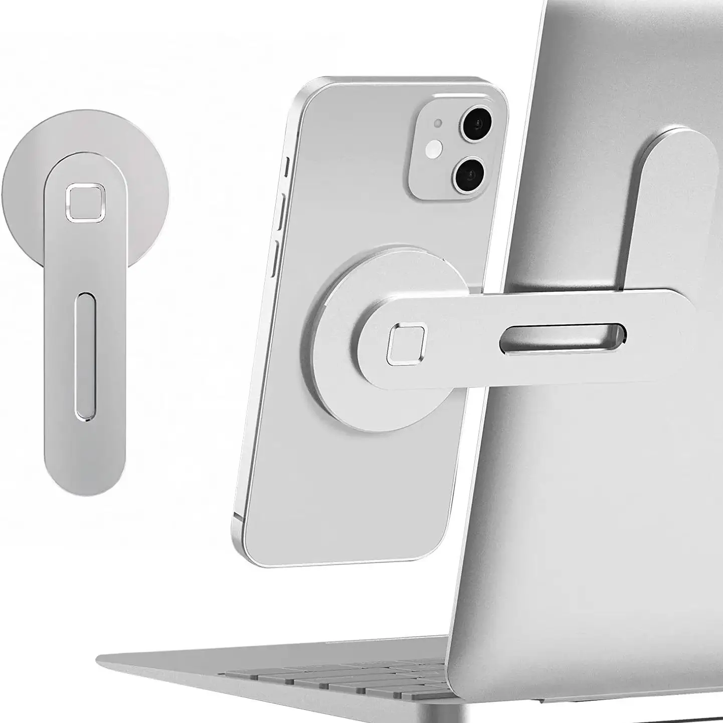 Adjustable Laptop Stand, Magnetic Phone Holder, Aluminum Slim Computer Monitor Side Mount Clip for All Phones