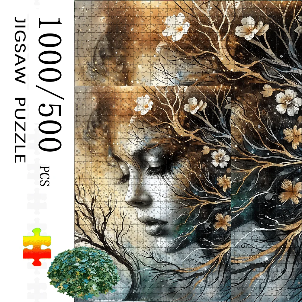 1000/500pcs -Inspired Cherry Blossom & Woman Face Jigsaw Puzzle - Large Adult Brain Teaser, Family Game Night, DIY Home Decor,