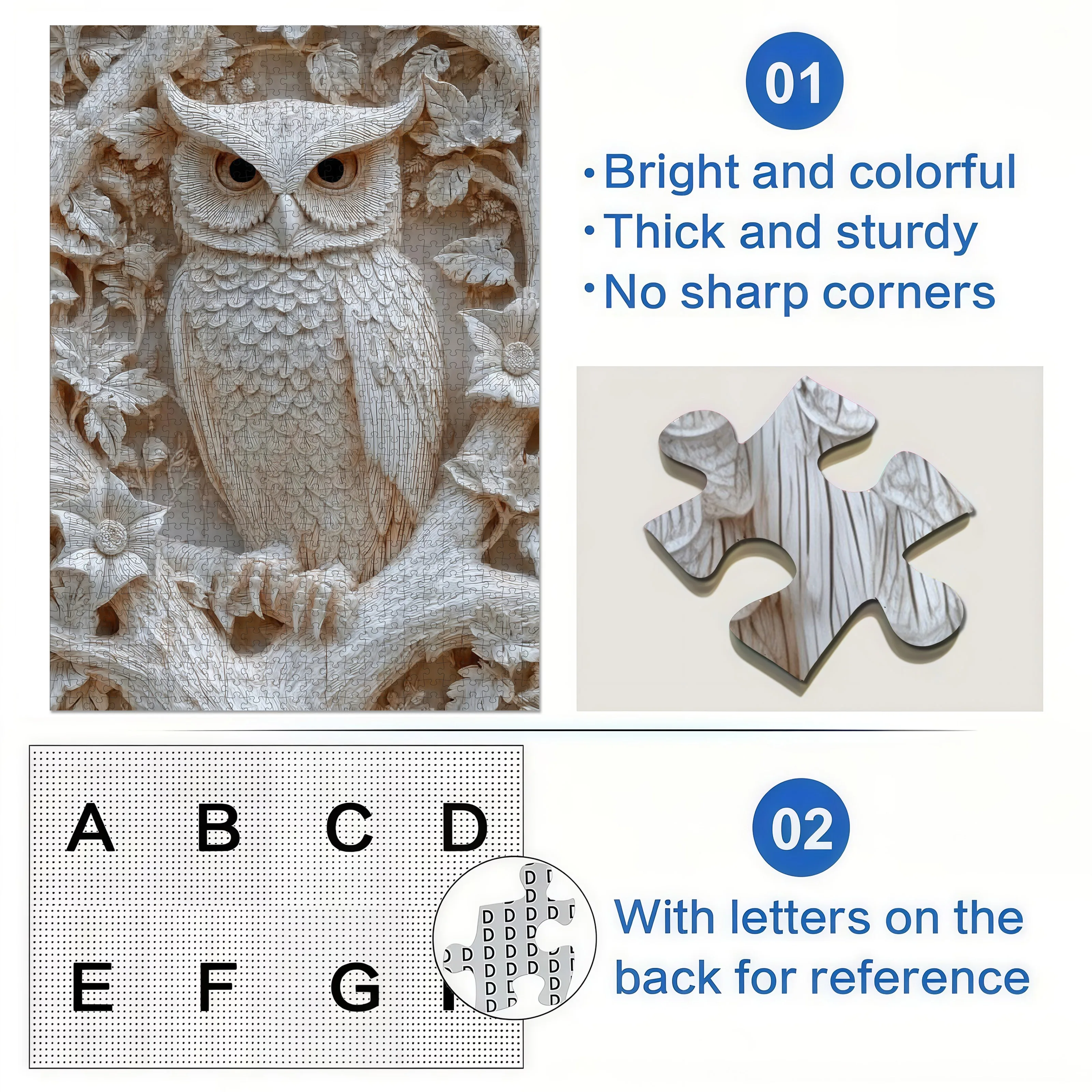 1 Box 500/1000pcs 3D Embossed Owl Paper Puzzle Toy - Forest Scene with Flowers & Birds, Interactive Brain Teaser for Adults, D