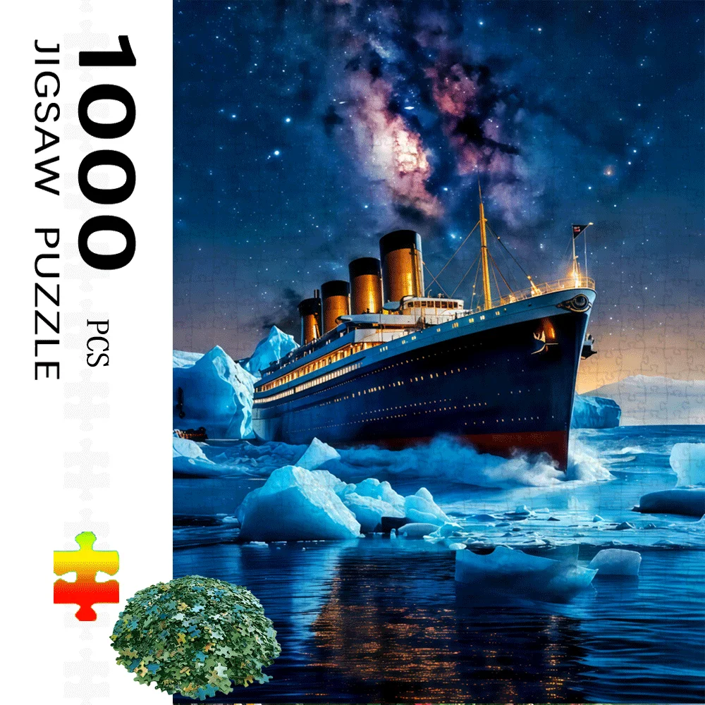1000pcs Large Titanic Ship & Iceberg Jigsaw Puzzle - Challenging DIY Home Decor Brain Teaser for Adults, Family Interactive Ga