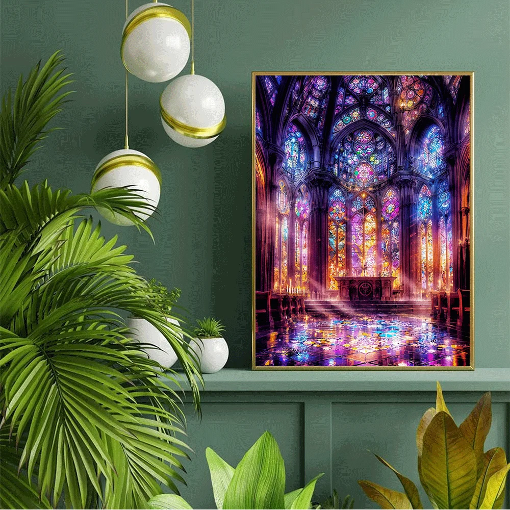 1000pcs of Adult Church Stained Glass Puzzles - Bright and Colorful Art, Brain Challenge Large Puzzle Games, Family Activity G