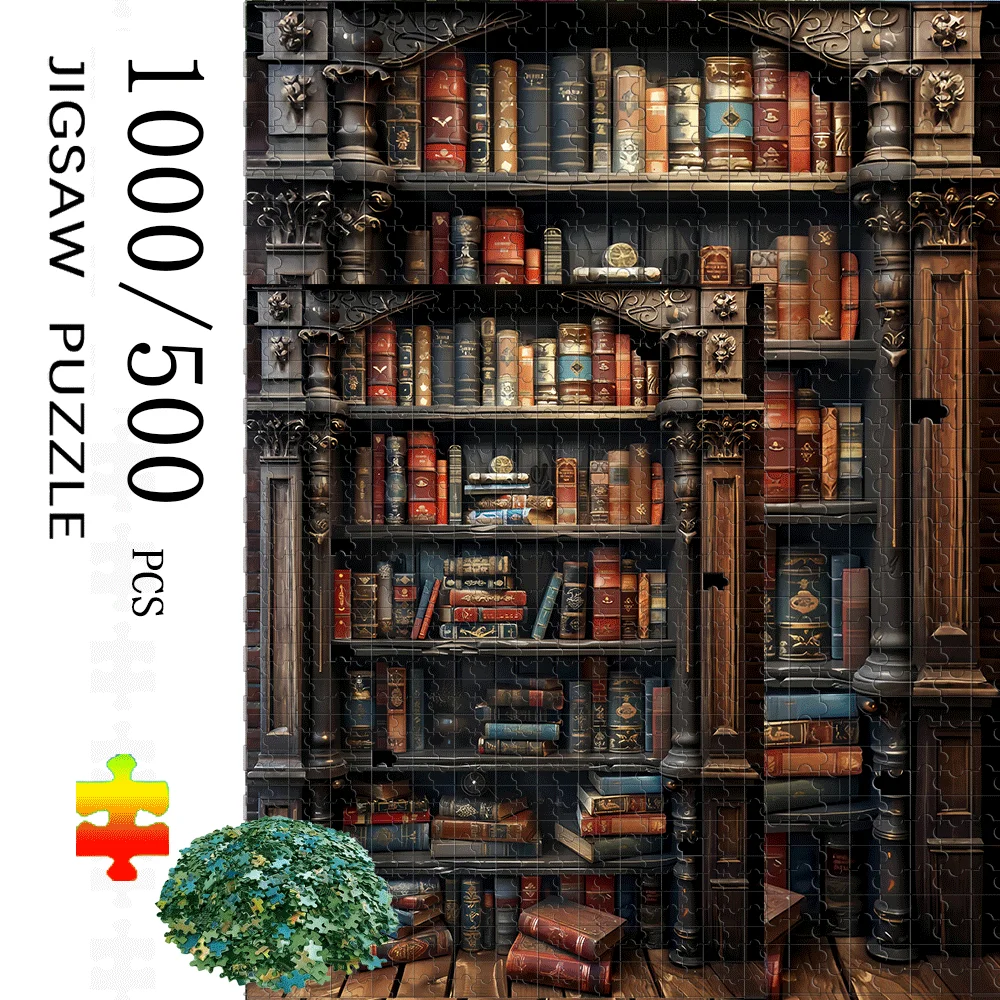 Bookshelf 500pcs/1000pcs Puzzle Game Gift - Interactive Family DIY Home Decor Brain Challenge, Perfect for Birthdays, Hallowee