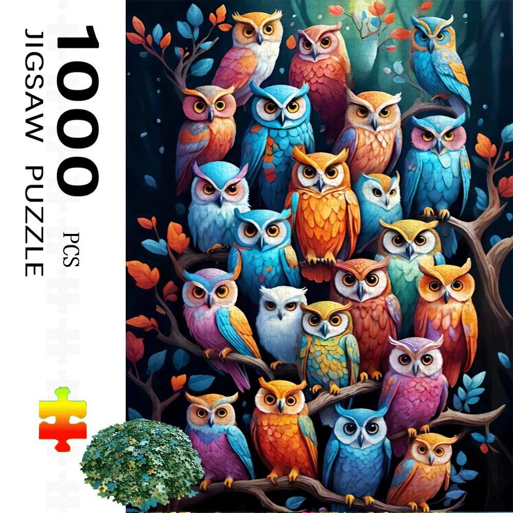 Colorful Owl, Branch Paper Puzzle 1000pcs Large Jigsaw Toy Adult Game Gift Family Interactive DIY Home Decoration Brain Challe