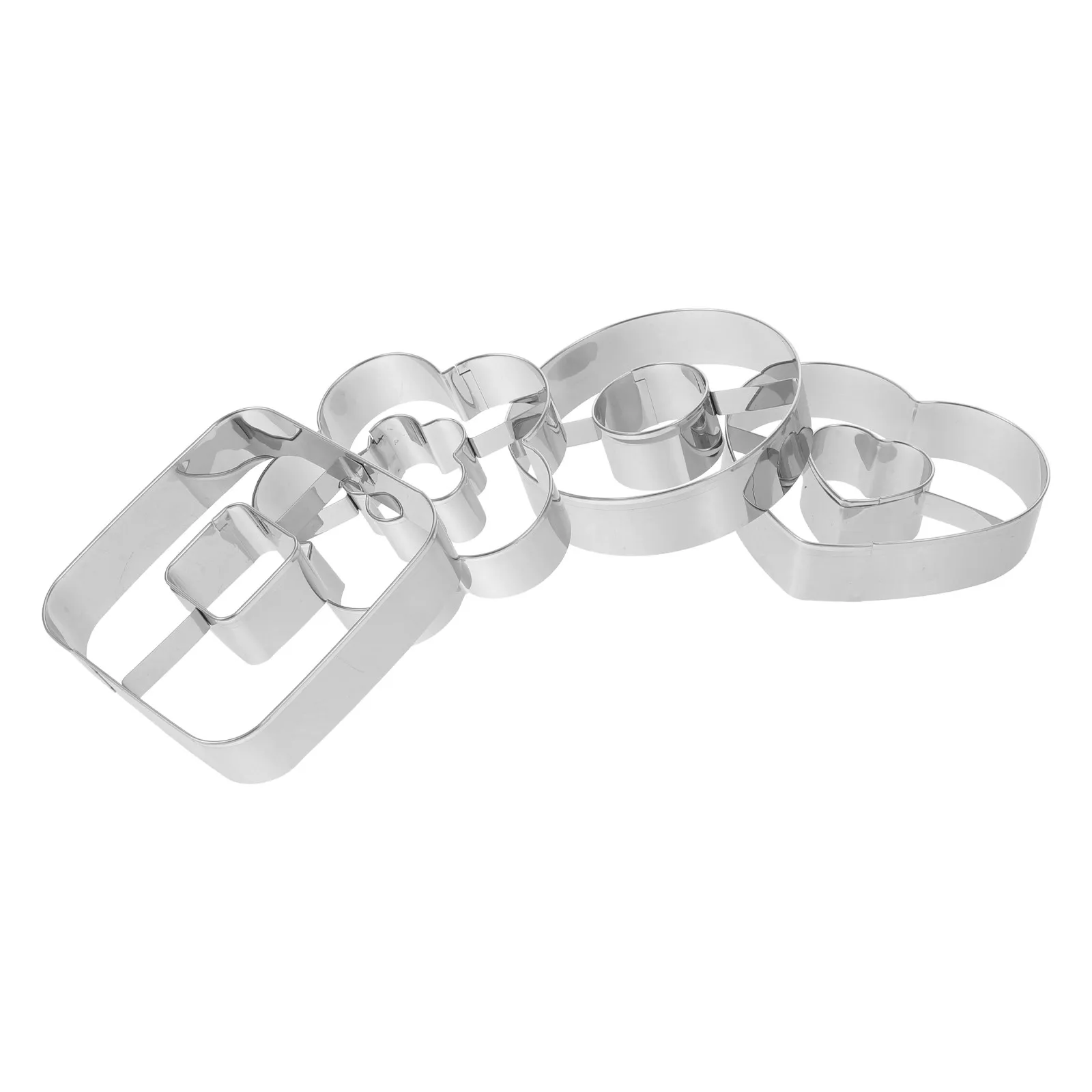 4Pcs Donut Cookie Cutters Biscuit Shape Stainless Steel Nonstick Round Heart Square Flower Baking Molds Fondant Cake Bread