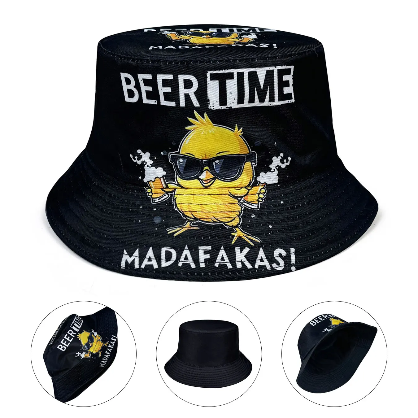 Cool Duck'Beer Time' 3D Graphic Fisherman Hat, Lightweight Cartoon Duck Design with Glasses, Reversible, Foldable Unisex Casual Sun Hat, Suitable for Beach Travel and Casual Outfits