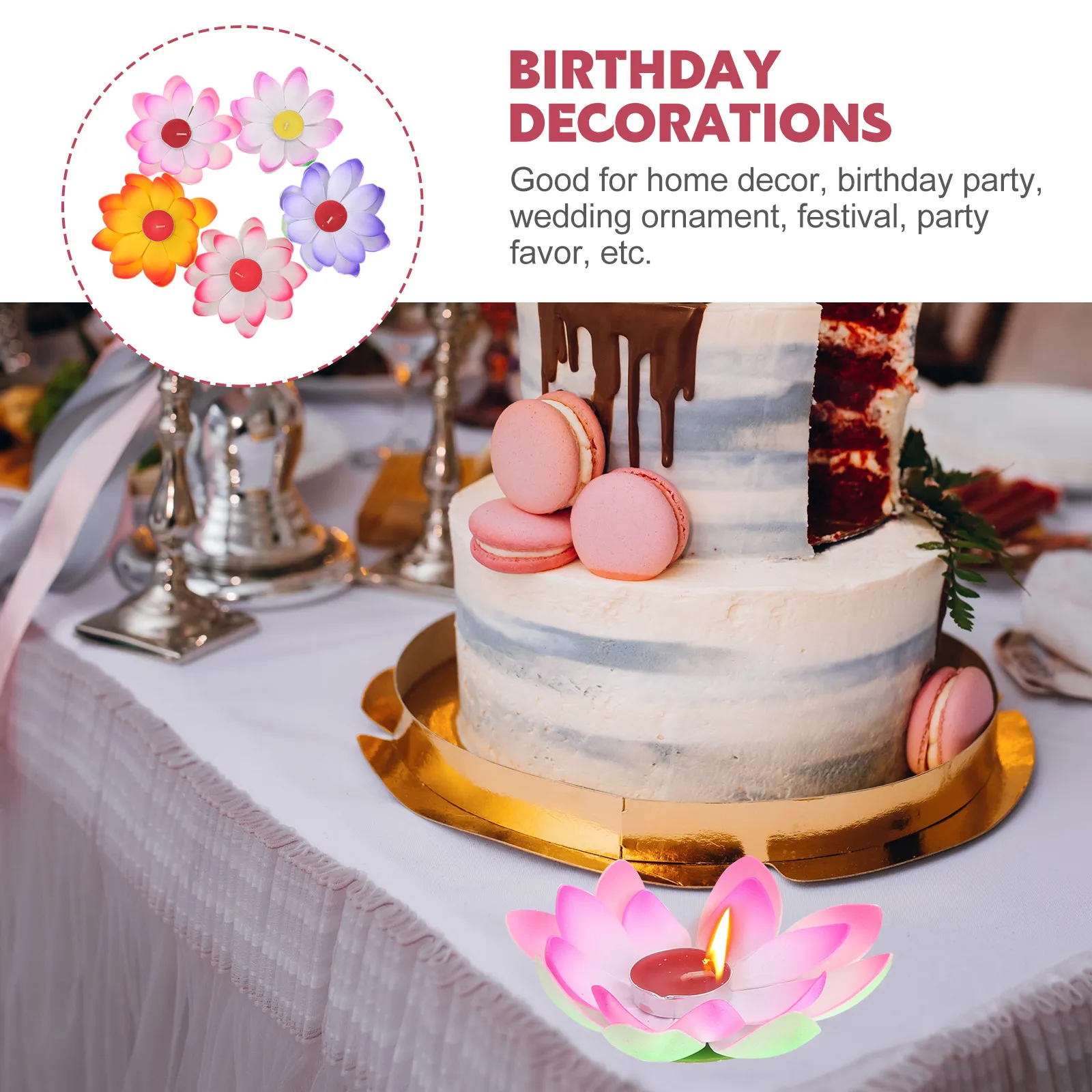 5Pcs Lotus Light Multi Color Double Layer Creative Design for Birthday Wedding Festival Party Decoration Romantic Vivid